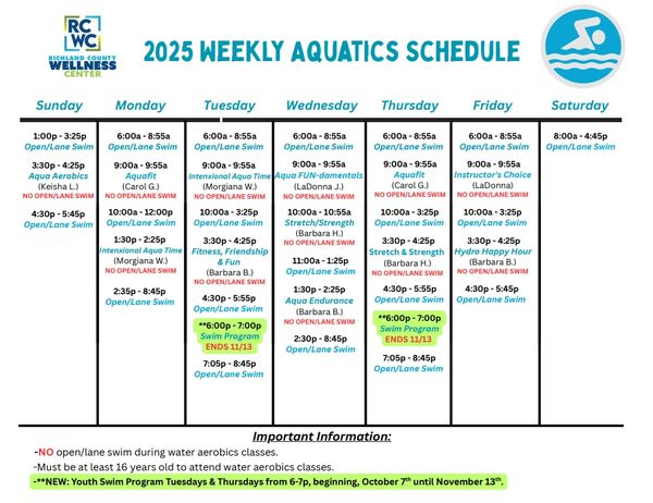 2025 Weekly Aquatics Schedule (pdf)